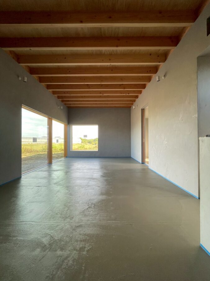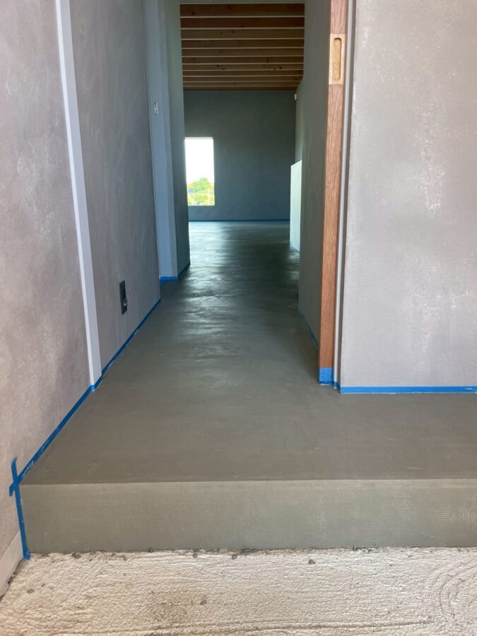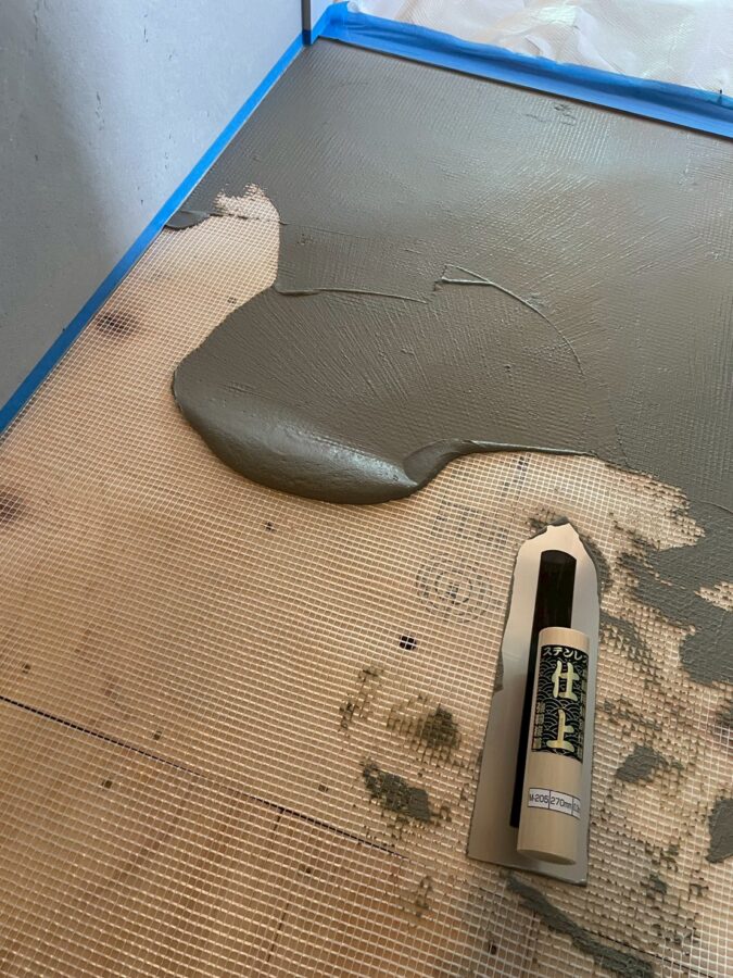 内装仕上げのコンクリートモルタル仕上げ施工状況