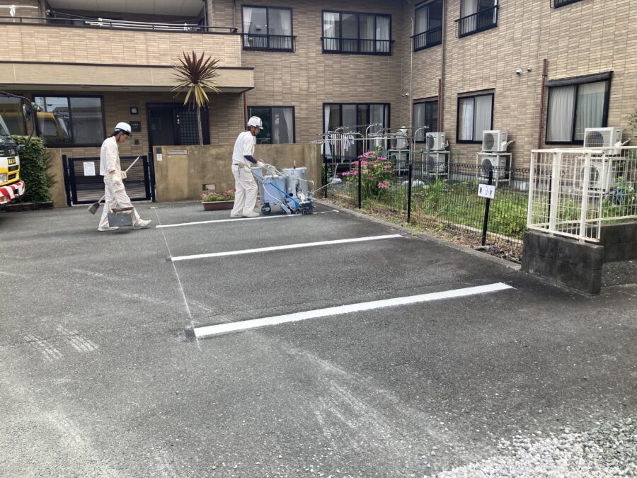 貸しテナントにて駐車場ライン引きなどの整備工事