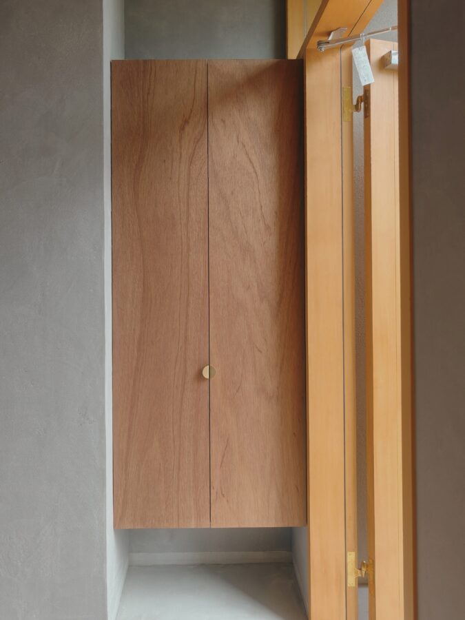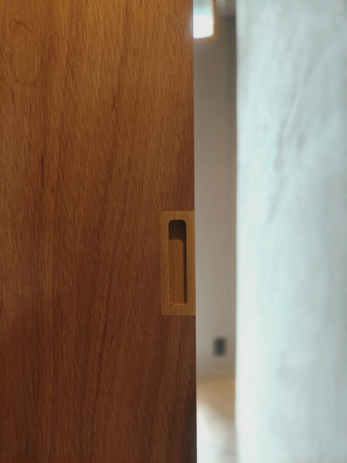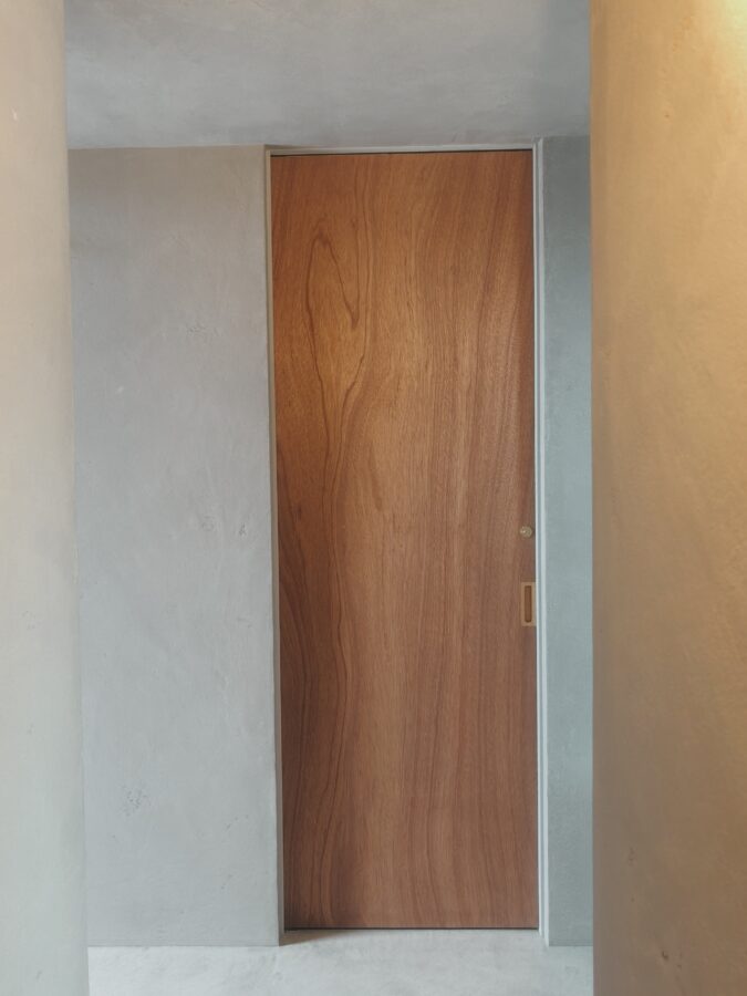 住宅新築工事にてラワンべニアフラッシュ戸制作建具設置完了