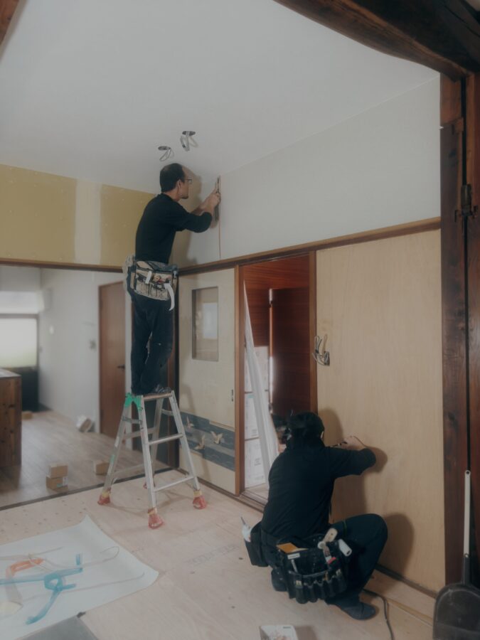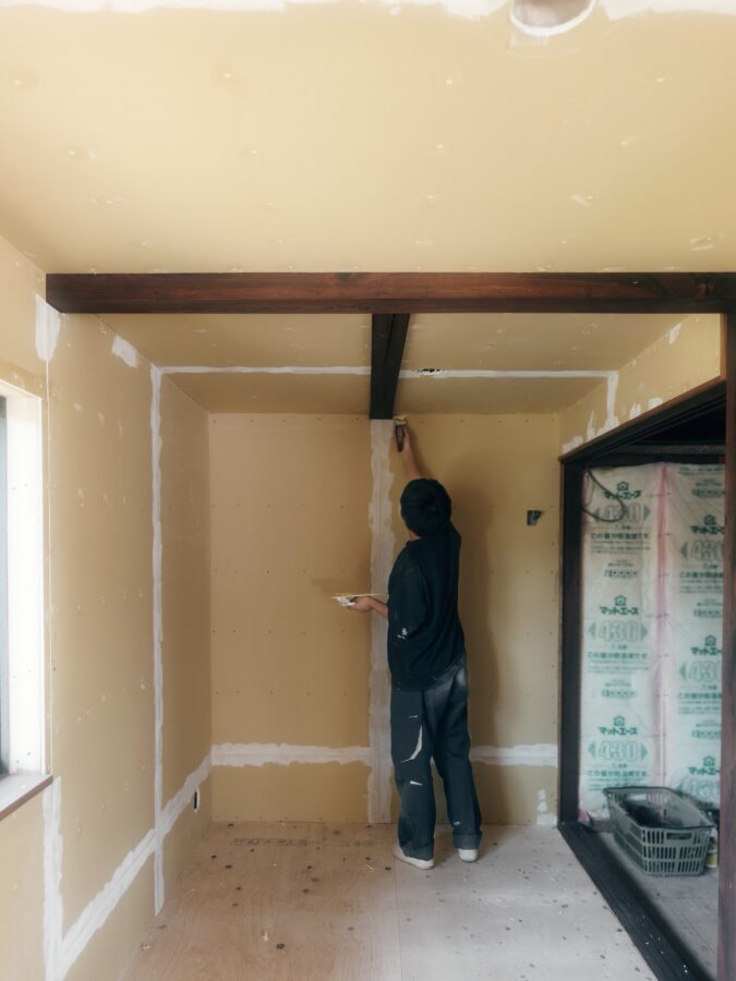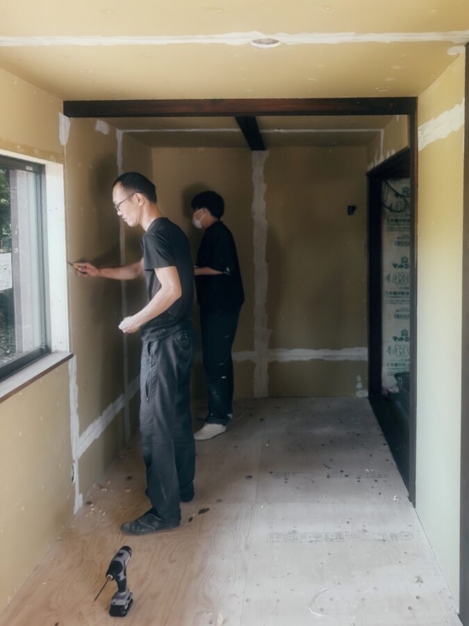 住宅内装リノベーション工事にてクロス仕上/パテ処理工事