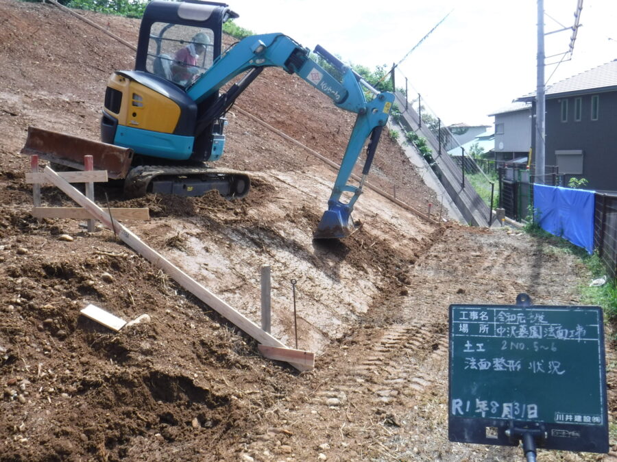 中沢町の山林内の法面の樹木伐採~造成~整地~整備工事状況