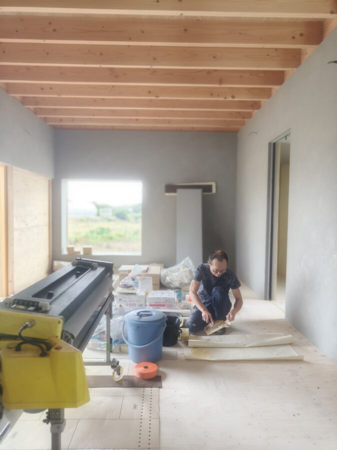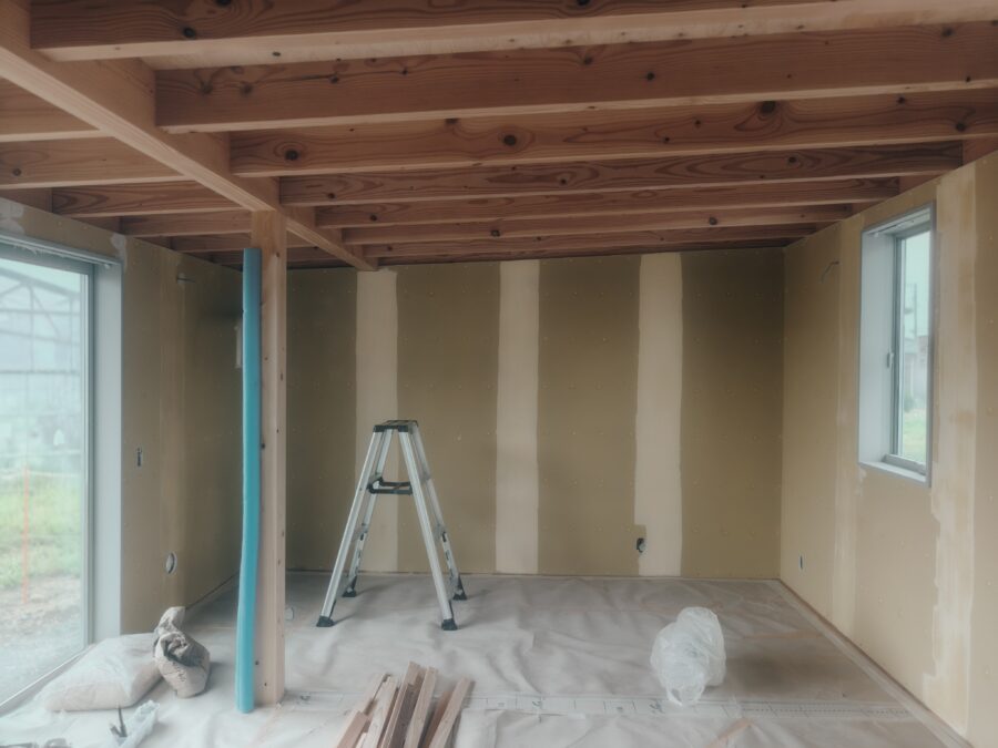 住宅新築工事にて内装仕上工事状況