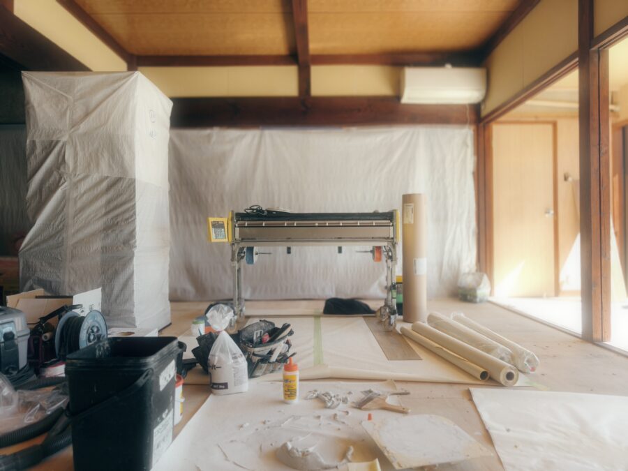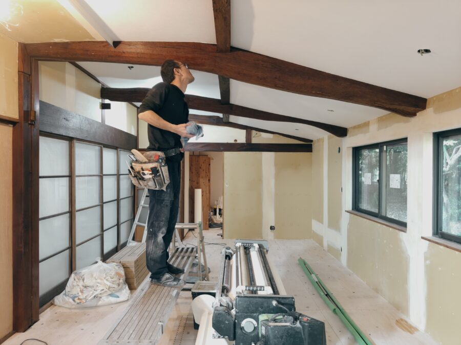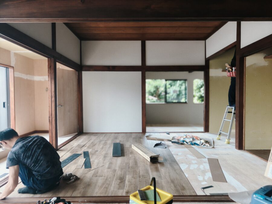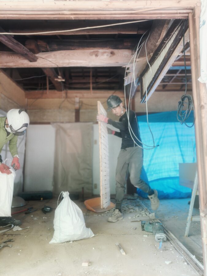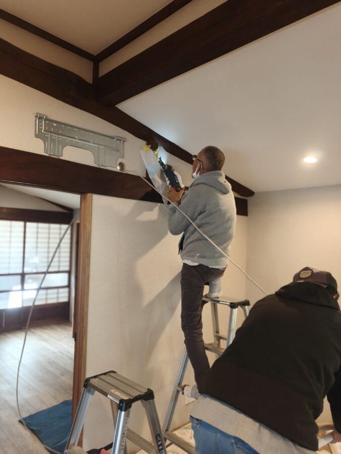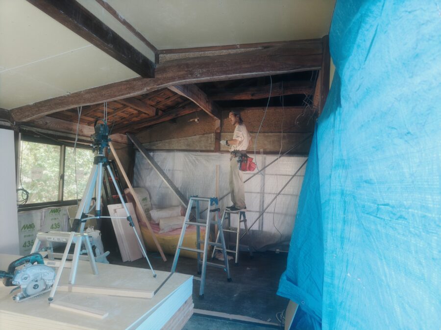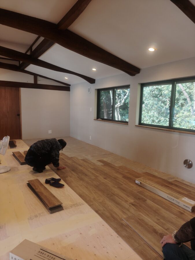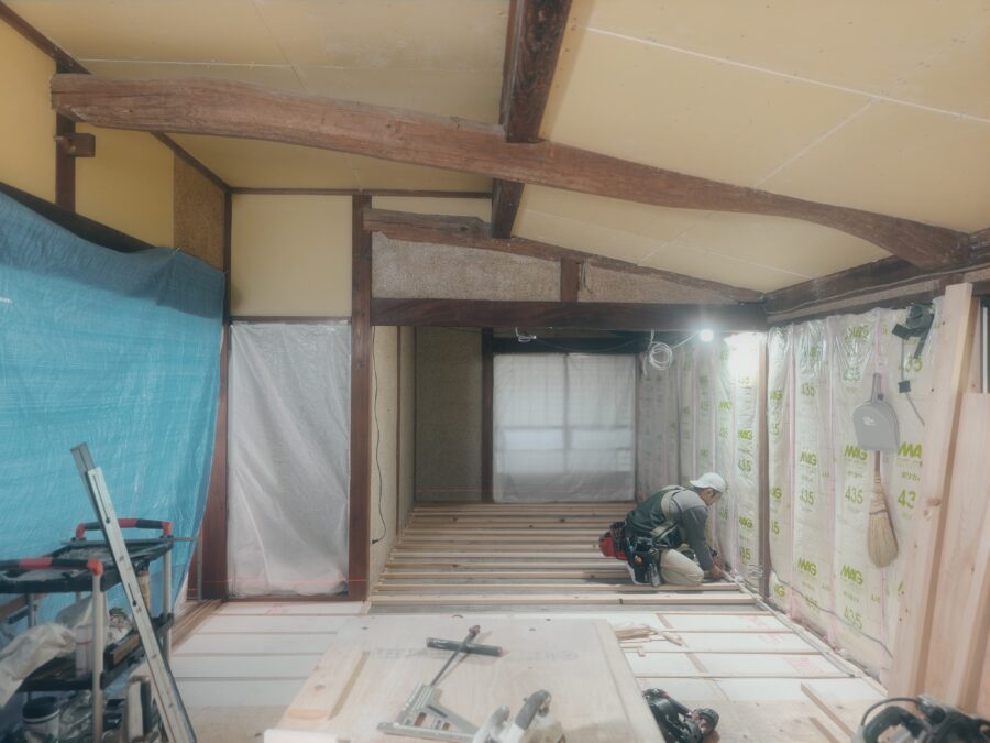 古民家リノベーション 解体工事~大工工事~電気配線工事~内装塗装~内装クロス仕上~床フロアータイル工事~他工事状況