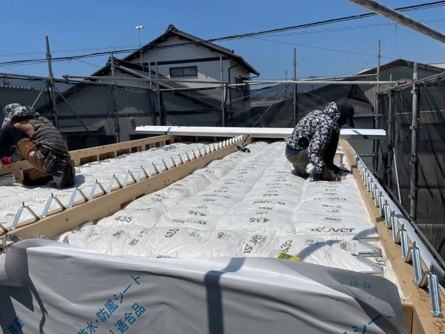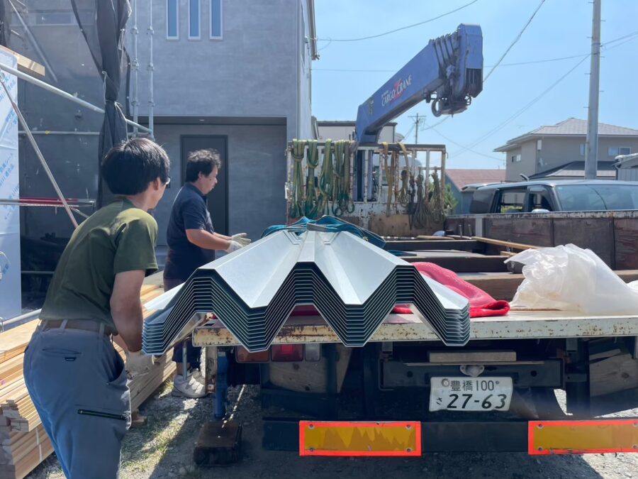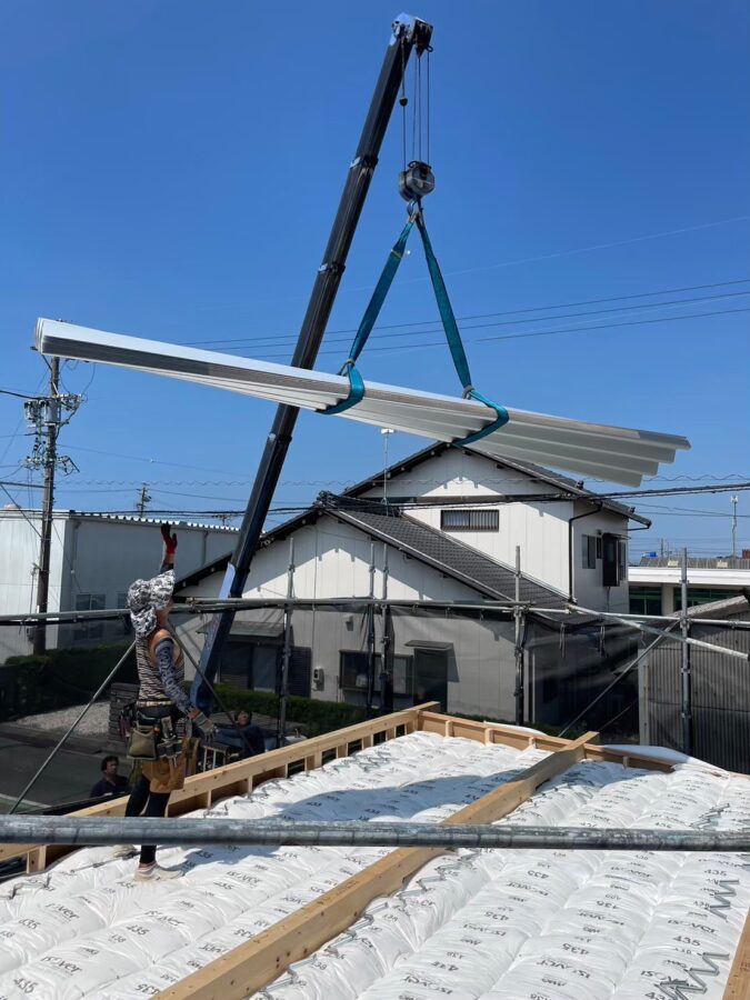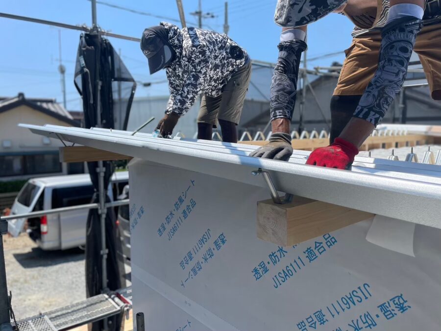 木造店舗新築工事にて屋根折半88を施工状況