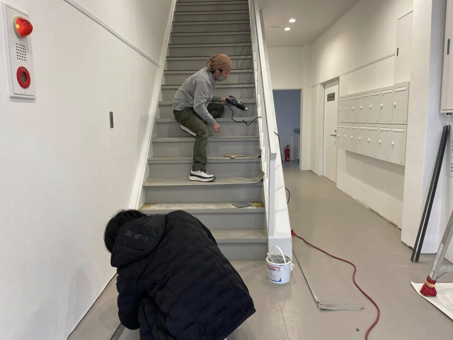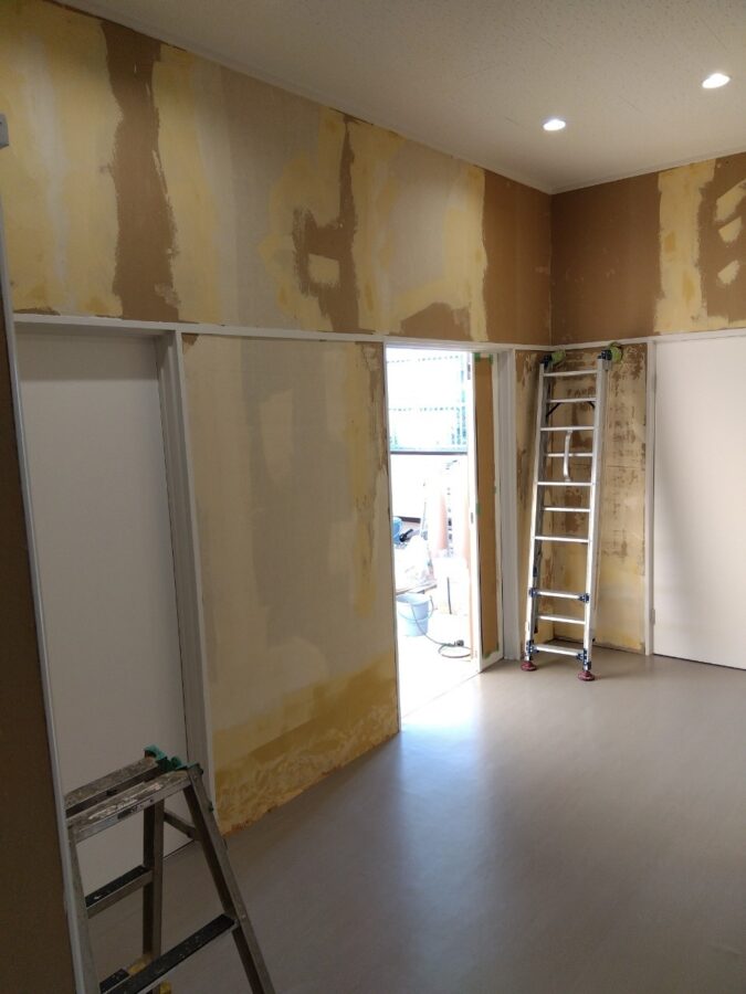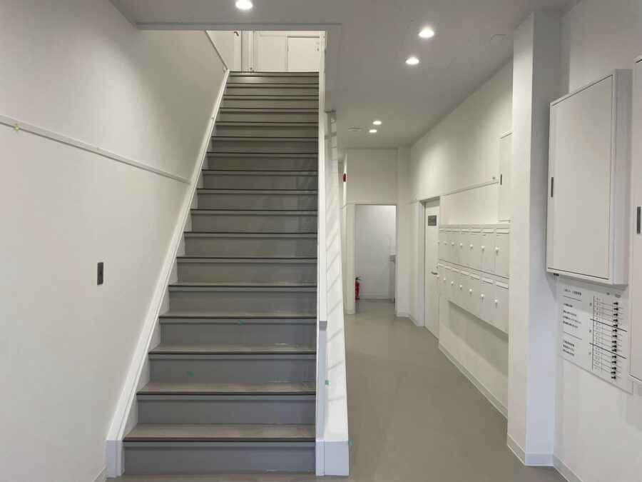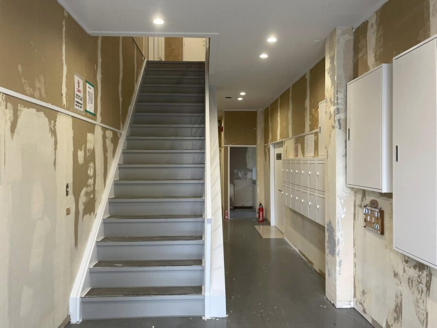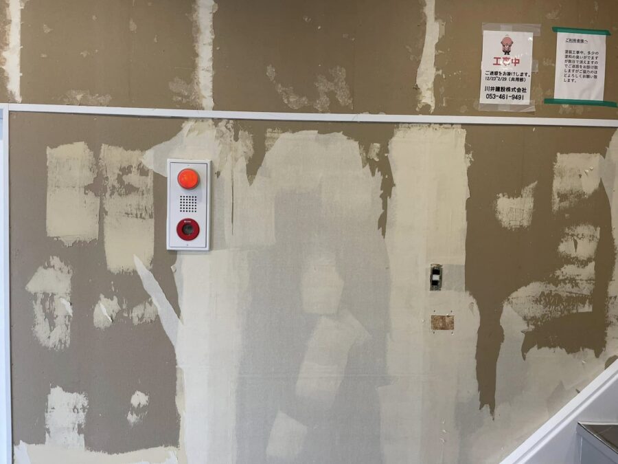 オフィスビルの共有部の内装仕上げリノベーション工事状況