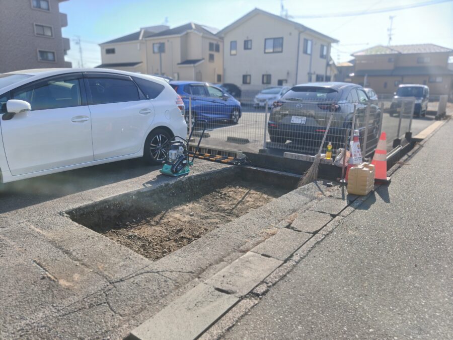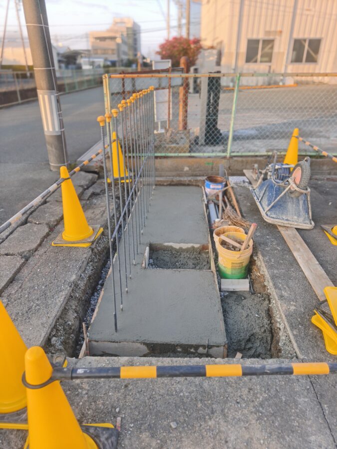 事務所の駐車場外構工事にてコンクリート擁壁の門扉を制作~工事状況
